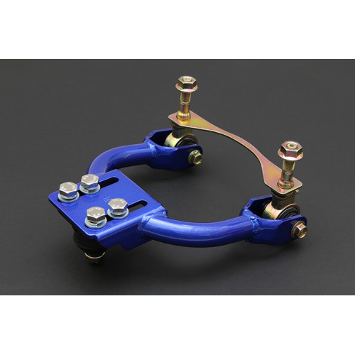 Ramená s nastaviteľným odklonom od firmy HARDRACE pomáhajú znížiť opotrebenie pneumatiky najmä jej vonkajšej časti a čím sa samozrejme predĺži jej životnosť. Ramená sú robené z tvrdenej ocele a obsahujú tvrdé silentbloky prémiovej kvality, ktoré na ceste prispievajú k stabilite vozidla a k lepšej odozve na volante hlavne pri vysokých rýchlostiach v zákrutách.